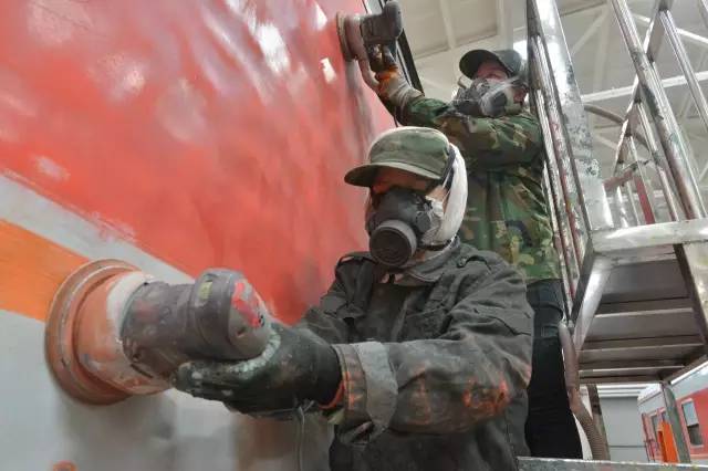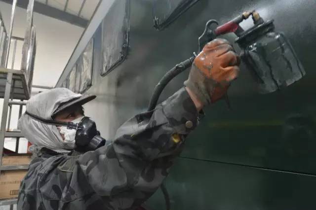 一辆客车从入库到面貌一新出库,需经历铲车皮、刮腻子、打磨、喷漆、刷腰线、涂刷列车上各种标识等十几道工序,大约要5天时间。包头车辆段检修车间泡芙视频下载地址组每天负责4至5辆车的泡芙视频下载地址喷涂工作,女工们分为几个小组,每个小组承包一辆车。